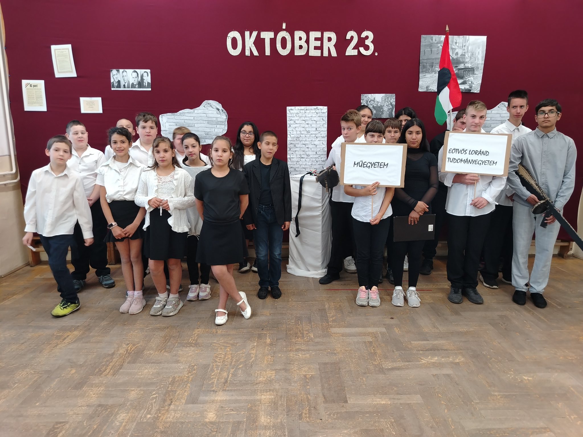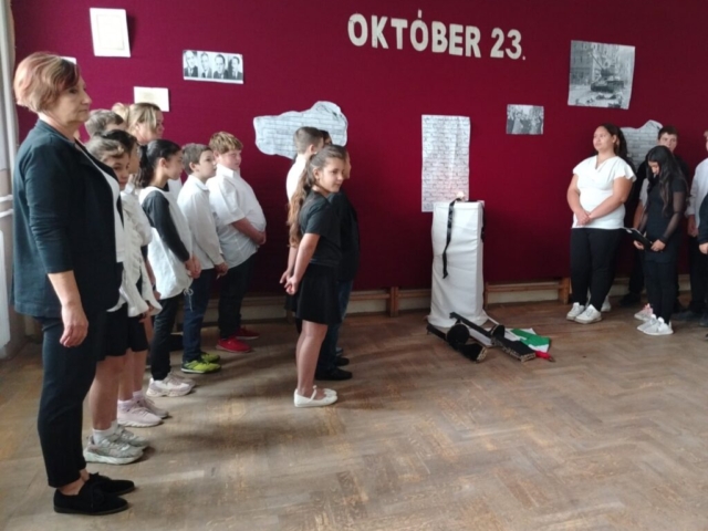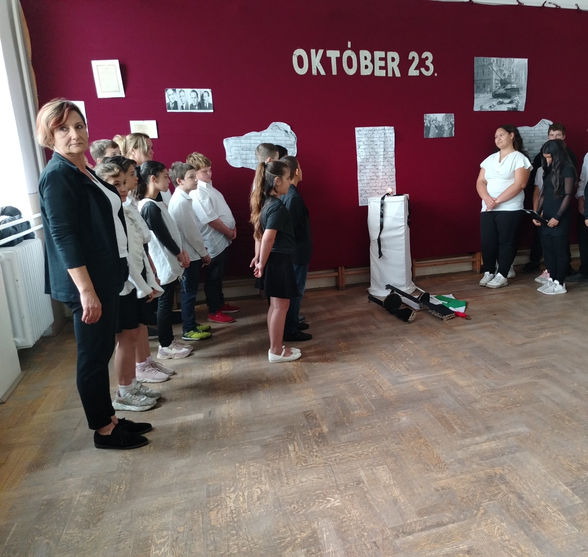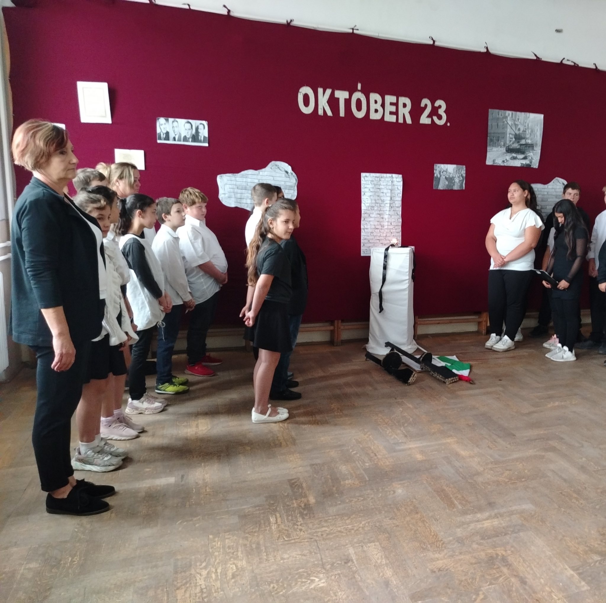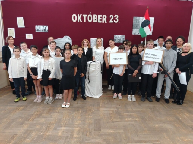 A magyar történelem bővelkedik az idegen uralom és zsarnokság elleni harcokban. Ennek nagyszerű példája az 1956-os forradalom is, amely az egész világ számára megmutatta a magyar nép erejét és szabadságszeretetét. 2025. október 21-én Felső tagozatostanulóink műsorával emlékeztünk a tüntetésben és harcban résztvevő hősök előtt. Felkészítő pedagógusok, Kis-Balogh Rozália, Szabó Sándorés Váradi Erika. Segítő munkatársaink, Bárczi Julianna, Pintácsiné Paksi Renáta gyógypedagógiai asszisztensek.